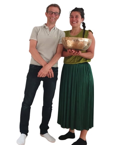 Kusuma Gunawan, Après 15 ans d'expérience dans l'enseignement, elle découvre le pouvoir infini des vibrations sonores, l'art de l'instant présent et de la respiration, elle devient formatrice en thérapie sonore et en méditation au sein de l'association SOUM. . C'est auprès de François, qu'elle a trouvé un puissant allié au grand cœur!